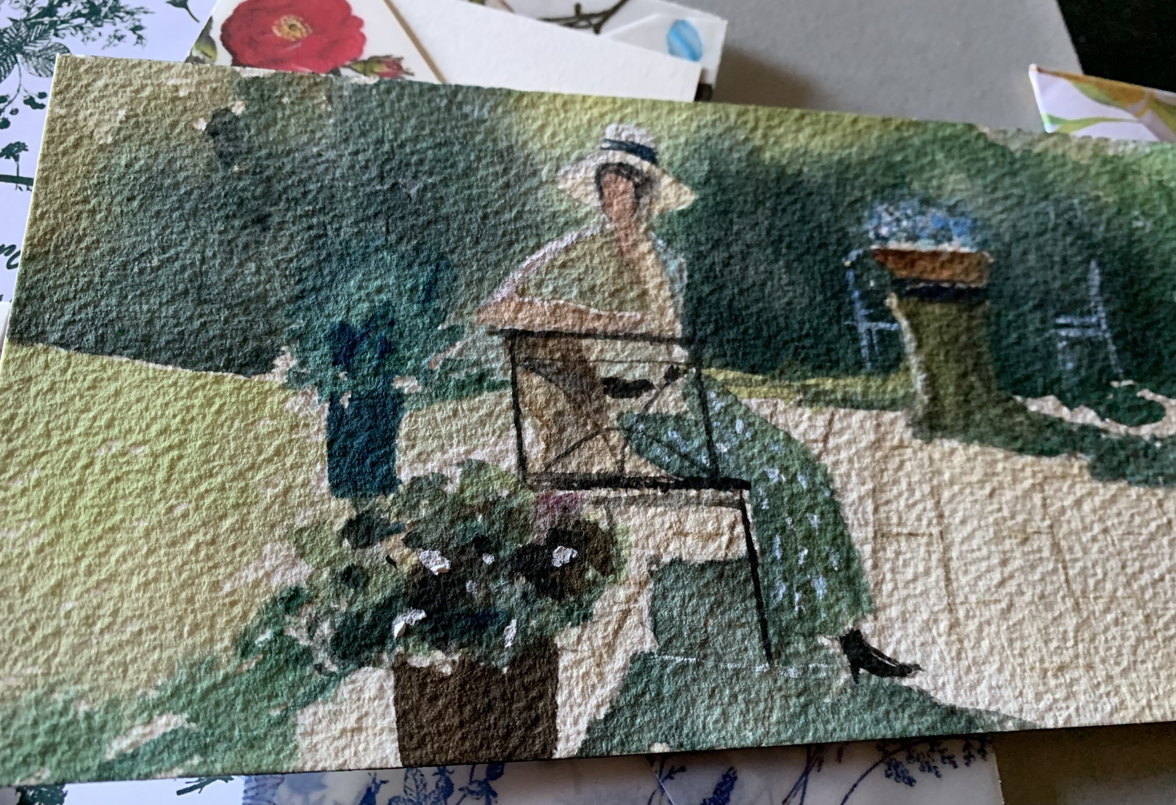 dizem que saudade dói mais que tudo…desarruma até a casa, tira as coisas do lugar… e, sem remédio, se espalha. como se deve curar a saudade? haverá um ritual? substituir a saudade por outro sentimento / esquecer. esquecer é o remédio, não voltar, não deixar nunca entrar. fechar a porta. esta anarquia toda, esta desordem completa, esta louça empilhada, e esta roupa para lavar… estas caixas entreabertas… e o amontoado de livros não lidos, estranhos, espalhados… os discos que não foram limpos, nem tocam, se empilham desastradamente… não voltaram pra Modena, não foram viajar, ficaram… estou condoída, desencontro, distração, negligência? talvez esta desordem toda… se enraizou. não basta tomar banho, mil vezes a chuveirada, o mar, a agua que lava e anima… aguar o tempo para que renove. os tomateiros cresceram, o espinafre começa a nascer…as hortênsias, elas se esconderam… a terra. o ar, o sol, o verde, as cores, os lápis, os pincéis… toda aquarela… preciso me concentrar. Não sentir mais a saudade. Elizabeth M. B. Mattos – fevereiro de 2026 – Torres