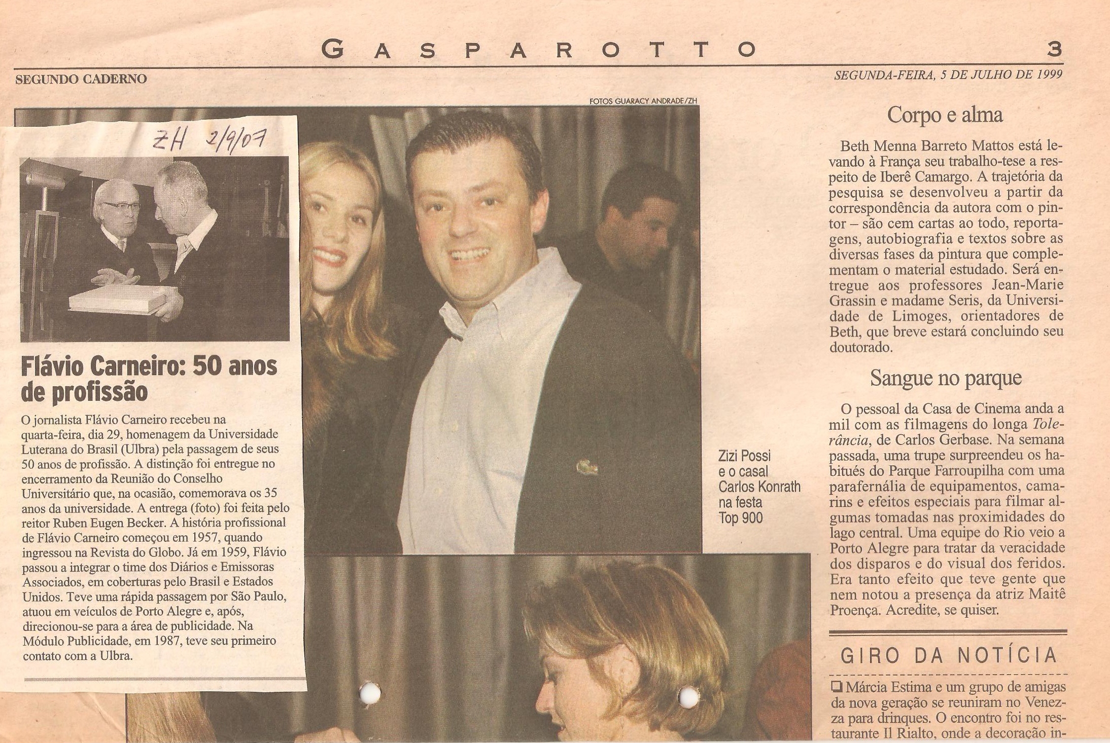 ZERO HORA: 2 de setembro de 2007. Flavio Carneiro homenageado pela ULBRA. “ A história profissional de Flávio Carneiro começou em 1959, quando ingressou na Revista do Globo.“