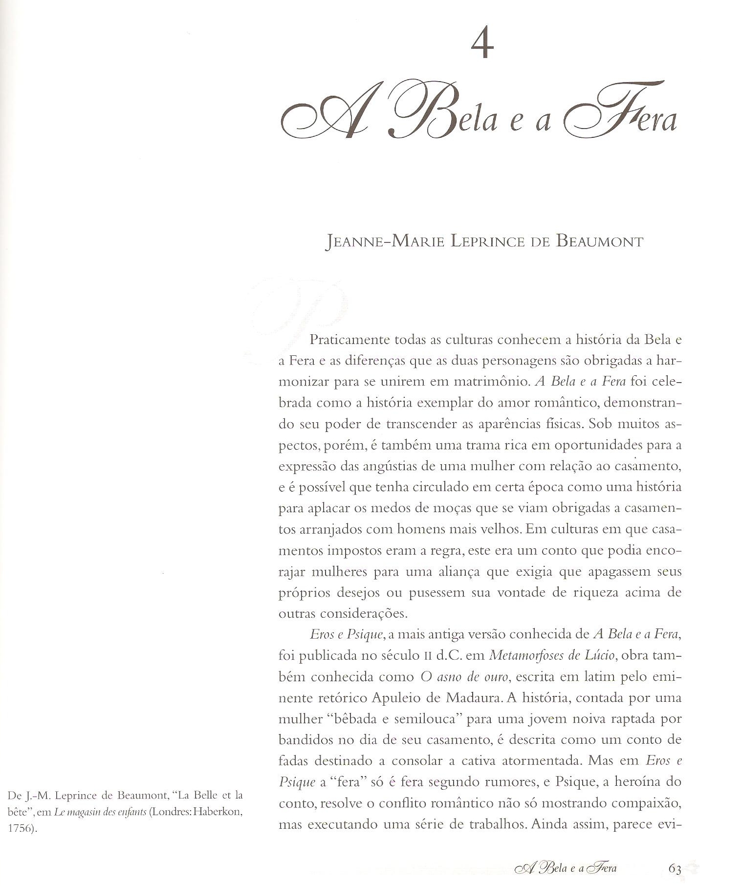 Eros e Psique, a mais antiga versão conhecida de A Bela e a Fera, foi publicada no século II d. C. em Metamorfoses de Lúcio pelo eminente retórico Apuleio de Madaura. A história contada por uma mulher ‘bêbada e semilouca’ para uma jovem noiva raptada por bandidos no dia do seu casamento. É descrita como um conto de fadas destinado a consolar a cativa atormentada. Mas em Eros e Psique a ‘ fera’ só é fera segundo rumores, e Psique, a heroína do conto, resolve vê o conflito romântico não só mostrando compaixão, mas executando uma série de trabalhos. Complexidade, amor, aventura, audácia e histórias...”