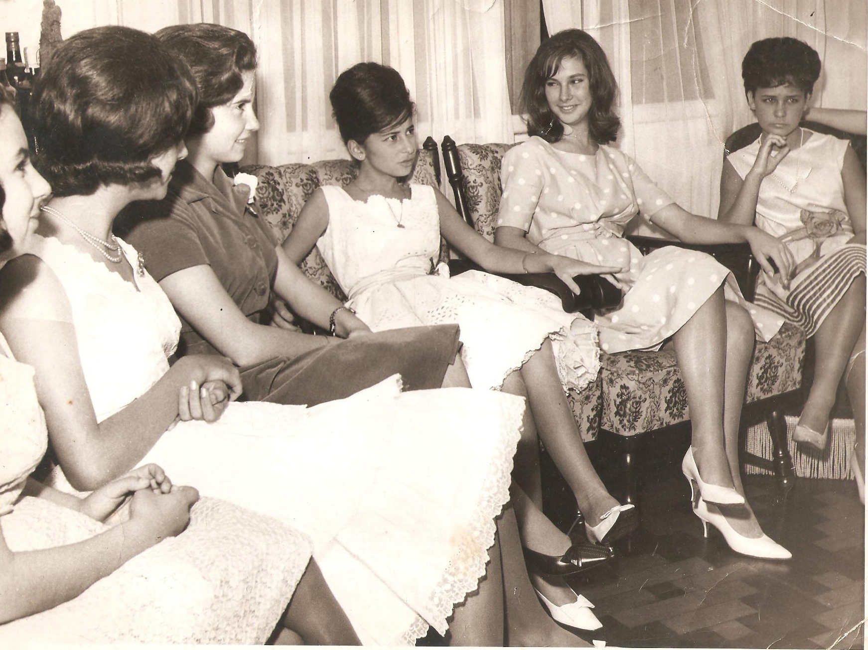 • É ela com o Tuia e a Balala. E na última é o aniversário de 15 anos dela. A Ana Maria Cauduro está olhando para ela, a que está de coque… entre a Ana Maria Cauduro e a Ana Helena Loureiro Macedo. A Nádia com o Guga, (Guilherme Alberto) é uma foto linda!