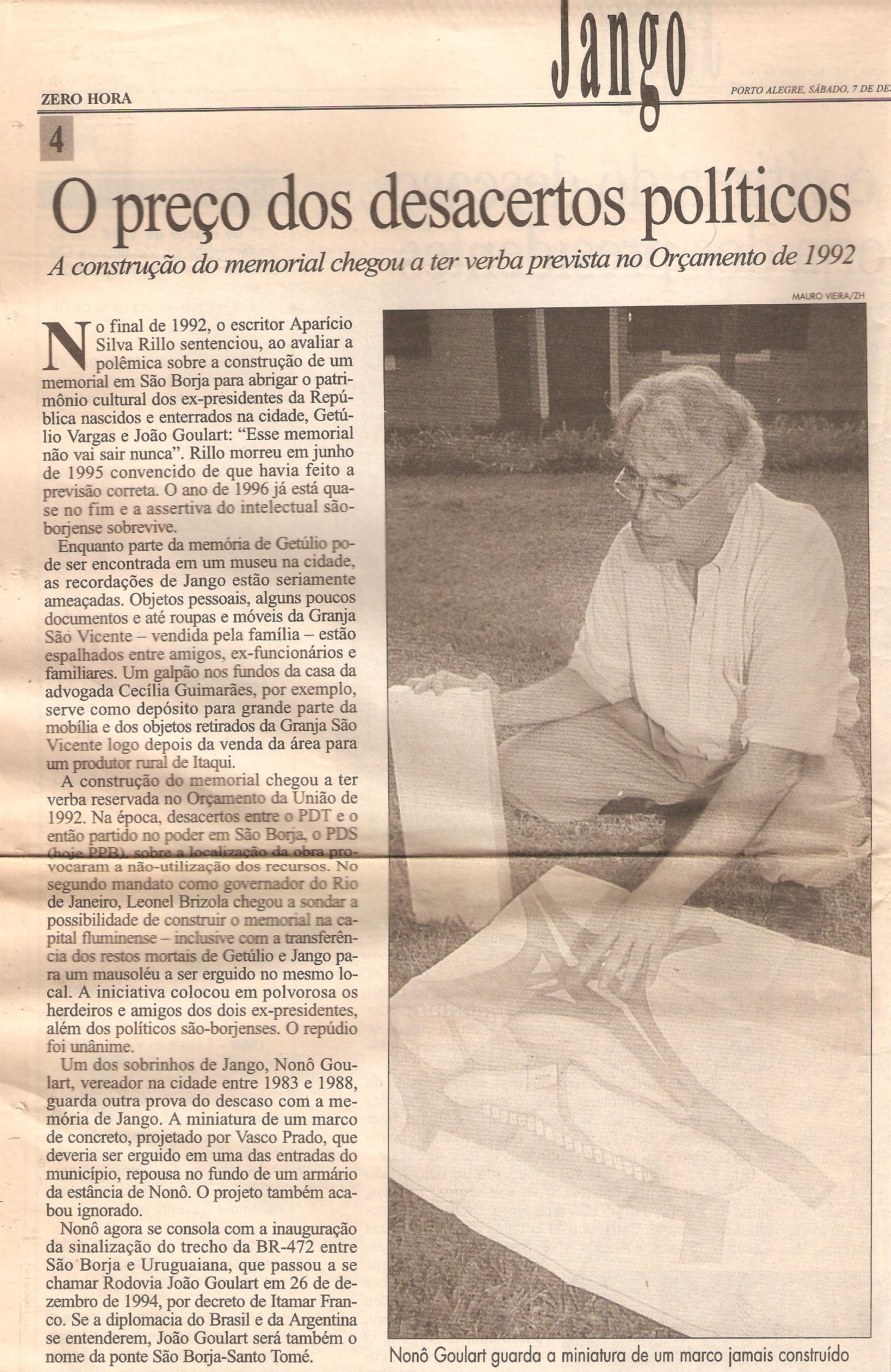 Nonô Goulart 18/10/201318/10/2013 / amorasazuis Vicente Donário, Nonô, guarda em São Borja, a miniatura de um marco jamais construído. Saudade do menino Nonô, e do amigo! Porto Alegre, sábado, 7 de dezembro de 1996 ZERO HORA Compartilhe isso: Clique para compartilhar no X(abre em nova janela) 18+ Clique para compartilhar no Facebook(abre em nova janela) Facebook Curtir Carregando... Relacionado