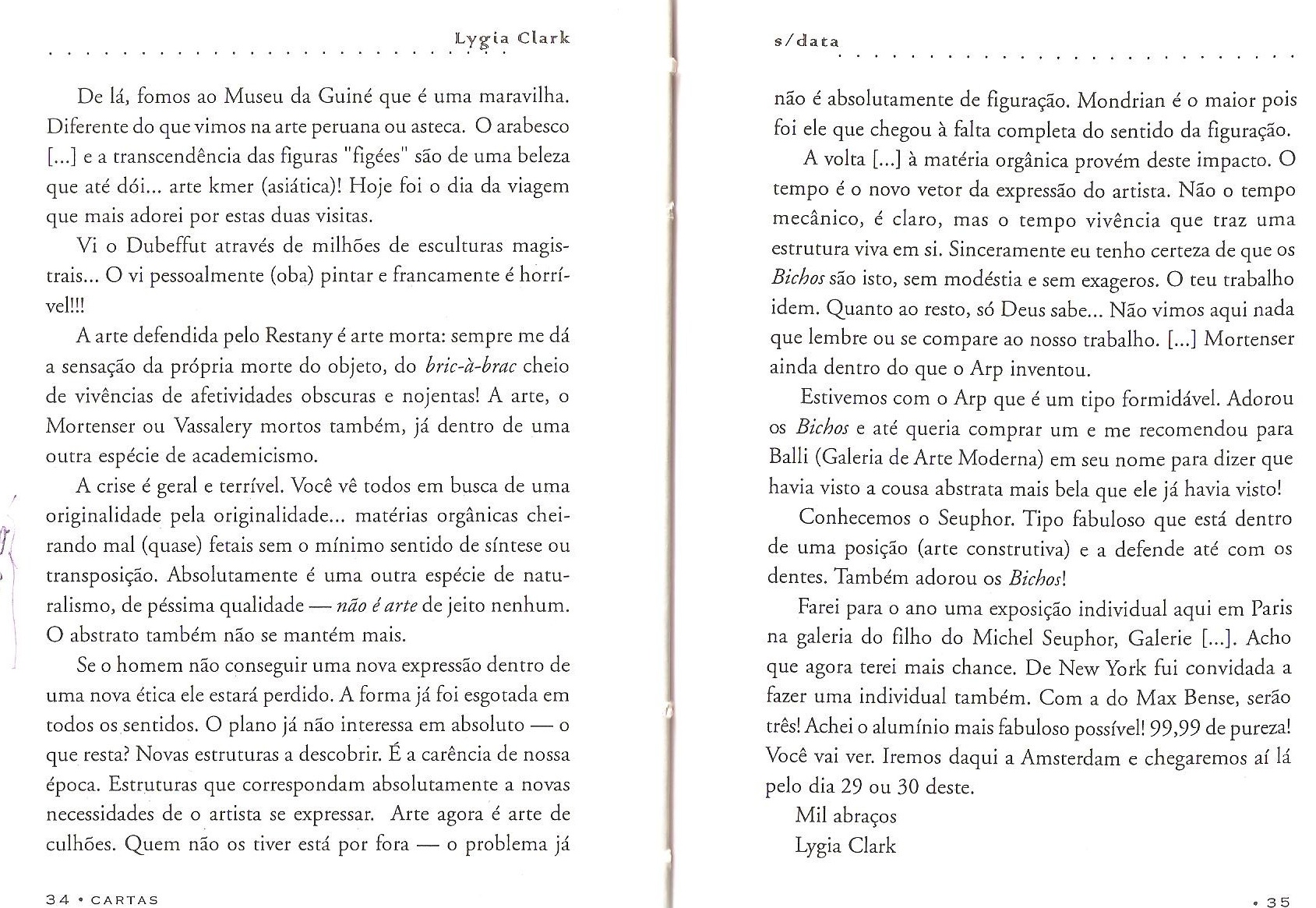 Fragmentos da correspondência: Lygia Clark e Hélio Oiticica