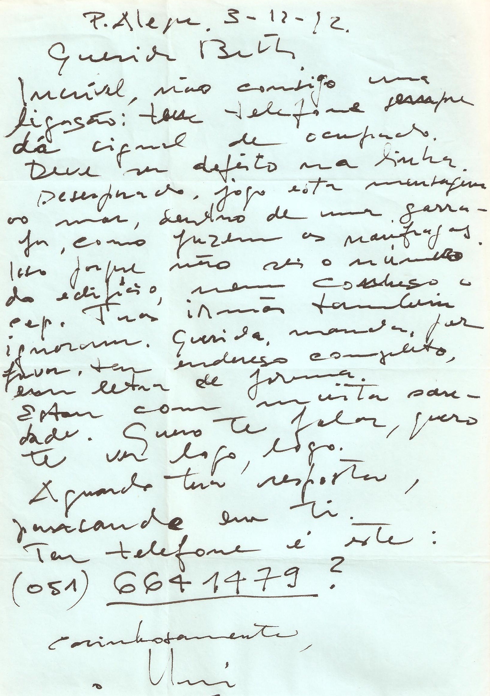 O ateliê lacrado de Porto Alegre, sem luz natural, equivocado, mas produtivo, fervente. Ele queria de volta a luz… Cartas de Iberê Camargo para Elizabeth Menna Barreto Mattos.