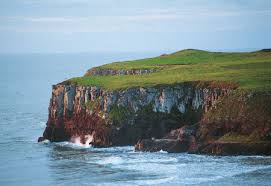O mar naquele verde acinzentado, pestanudo, penteado com espumas brancas. Areia fina, endurecida. Sinto vontade de avançar e beber água salgada. Gaivotas. Pedras, as nossas falésias!