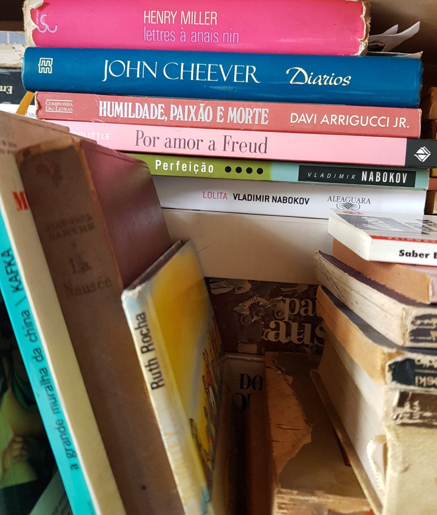 E todos os meus pensamentos, ah, meu querido, são miméticos dos teus…., insólito afirmar com incerteza, mas sei que estás do outro lado, acovardado pela resiliência. Larga tudo e me abraça. Toda a minha pequena e fantasiosa vontade de te beijar escorrega como flores de milagre… Quando me submeto aos beijos impossíveis e necessários consigo transformar o malabarismo desta entrega em algo apenas meu, meu gosto de volta… Como se fosse possível me abastecer para te esperar. Tu não te atreves, não te preparas, não te propões. A expansão do passado e o crescimento luxuriante da memória multiplica esse número para pelo menos cinquenta. Tantas foram as missivas que voam cheias de desejo, beijos, abraços, odores e entrega. Sem dúvida, a estranha multiplicação retrospectiva dessas cartas podia ser explicada pelo fato de que cada qual lança uma sombra lancinante, tal qual um vulcão na Lua, sobre vários meses de sua vida, reduzindo -se a apenas um ponto quando começava a brotar o pressentimento não menos doloroso de outra mensagem. Muitos anos depois, ao trabalho em Textura do Tempo: encontro neste fenômeno prova adicional de que o tempo real se relaciona ao intervalo entre os acontecimentos, e não a sua ‘passagem’. Nem mesmo a combinação dos eventos, ou ao fato de que projetam sombra sobre a fissura onde transparece a textura temporal pura e impenetrável. O que desejo não chega ao teu corpo. Não consigo tirar tua roupa, tocar tua pele, e fazer ajoelhar. Ada ou ardor, absolutamente, incrível e perfeito, e, uma mistura de texto e memória, já não sei mais, eu anotei tantas vezes que tudo se misturou… A leitura tem o feitiço do imediato, da inclinação, absorção, do flagrante roubo de expressões, palavras e jeitos, arranjos. Somos confiscados pelo autor e ficamos mergulhados por muito tempo, o barril de vinho…