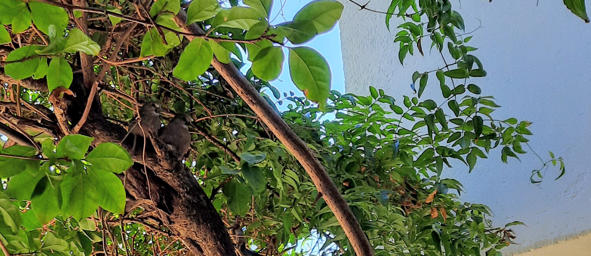 Domingo avança morno. Ruídos atravessam as janelas, mesmo fechadas, e me aborrecem… Liguei o rádio. De onde estou posso ver as folhas verdes. A porta-janela da sala está com respingos verdes das novas folhagens, altas e esparramadas para esconderem as janelas do outro prédio. Ias gostar. Sexta-feira, afundei-me na compra de um mar verde em vasos de diferentes tamanhos; verdes e verdes pra fazer o jardim no estreito corredor-balcon da Independência: dívidas indevidas/compras e compras. Eu e as compras!
