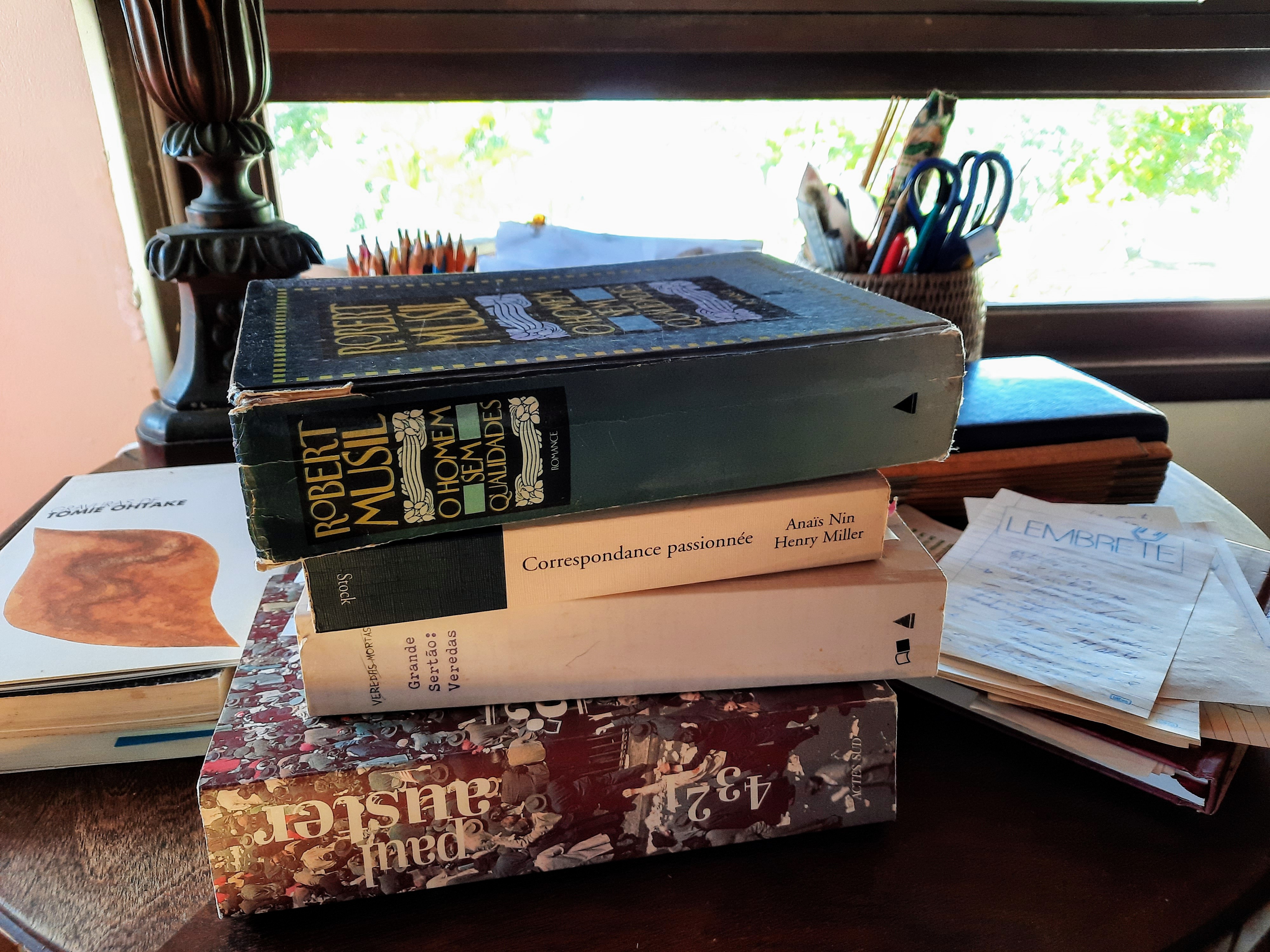 A metade, o meio não deveria me satisfazer, metade de indolência, ou de preguiça, ou de remoto desânimo feliz, fico pela metade, na metade. Dia ensolarado. Beleza particular, cheia, vamos pegar o inteiro! Caminhada metade. Faço metade da arrumação. Não estão em ordem os livros, nem as estantes definidas, nem as louças, nem o lugar certo. Um dia quero arrumar fazer bonito, ter tempo para nada fazer, sem culpa. A poltroninha nova vai definir tudo, nada de leituras na cama, mas sentada, comportada. Vamos ver! Almoço, fico na omelete, meio copo de vinho, meio tempo, meia fruta. Meio sol, meia lua (se for pão francês, delícia), meio livro. Sim. Milhões de páginas, metas importantes (Grande Sertão, 4321, Escritos, Bela do Senhor, Bíblia, O Homem sem Qualidades (já na cabeceira) para terminar de ler, não. Vergonhosamente, metade. Hoje especialmente feliz eu me disponho a vencer a fazer a ser gentil, alegre, a ler desavergonhadamente. Foi mesmo Rocamadour a definição, vou voltar a França, um dia indefinido, claro! Pensamento metade. Quero salvar o tempo, o sol, e tua poderosa generosidade. E a CPI da COVID por inteiro a digerir, Brasil importa, ou também pode ser metade? A luz por inteiro, e a noite completa, por inteiro. Elizabeth M.B. Mattos – maio de 2021 – Torres