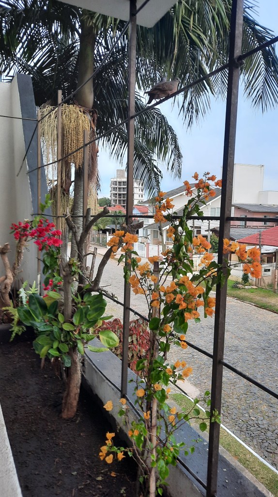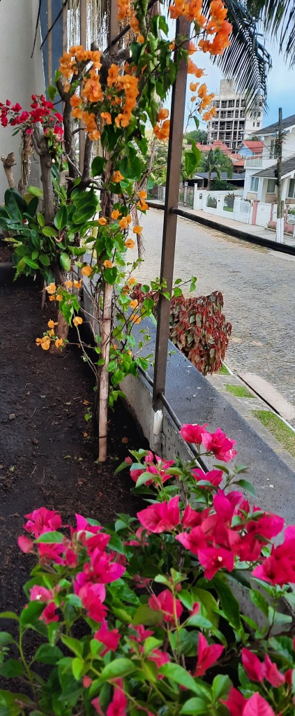 Não contei quantos estão no céu, os balões voltaram e com eles a festa, a festa… Como se pudéssemos dançar nas calçadas! Enfeitar o coração com bastante / muita alegria flutuando… Este outono chega carregando frio, os casacos coloridos e as boinas se apressam nas caminhadas. O movimento alerta: estamos vivos! Elizabeth M.B. Mattos – maio de 2021- Torres – torço para as buganvílias festejarem a cor todos os dias…