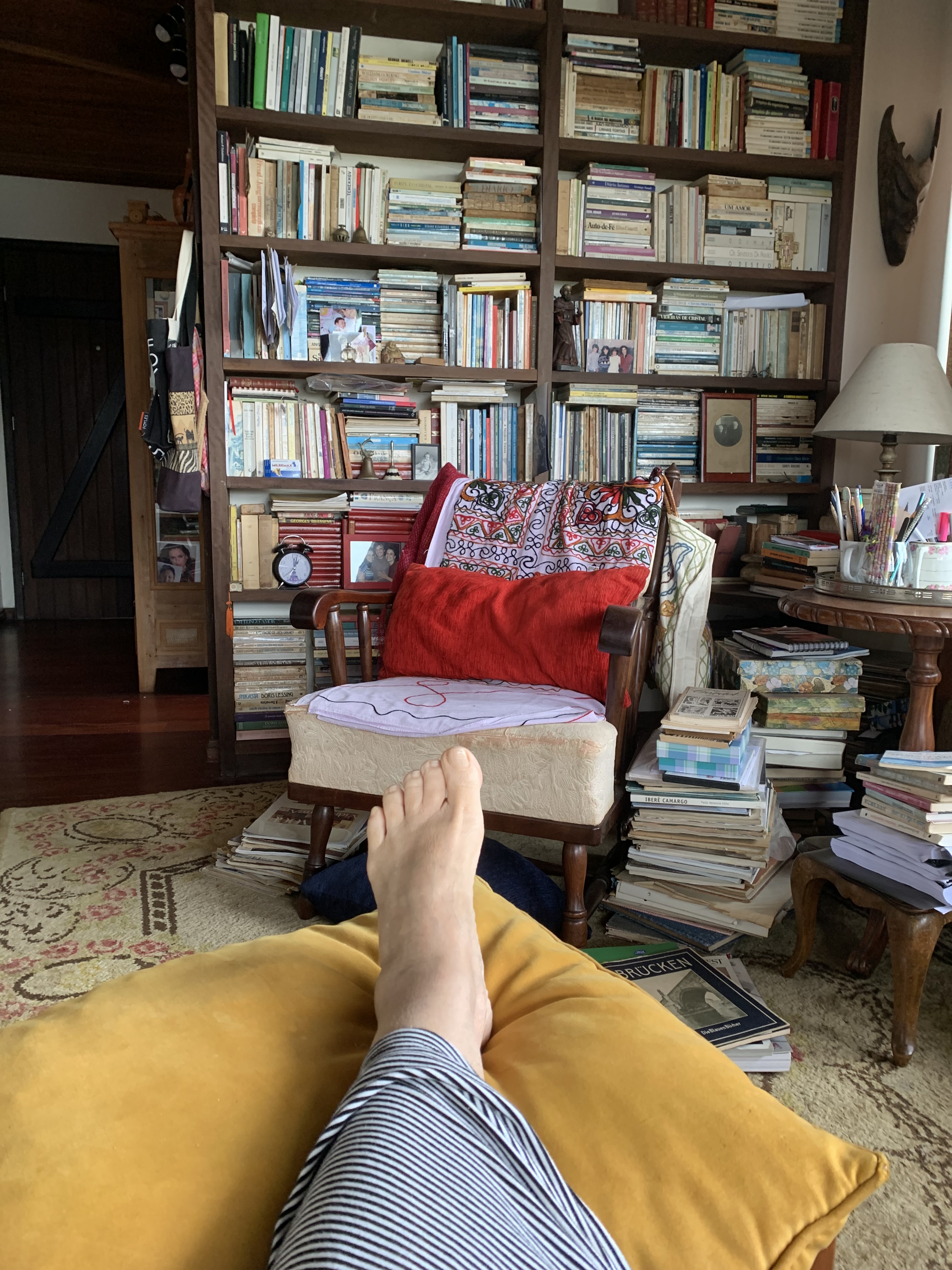 A gente gosta de pensar, de escrever, de falar, de ouvir, mas tem dia que não acontece assim, é um fazer enfiado, o dia inteiro, o dia todo de gosto bom / cheiro bom, então, eu limpo, não tanto, mas o mínimo, e este mínimo é bastante, eu canso. Este pouco toma manhã inteira: manhã de tirar o pó, arrumar um pouco aqui, ali, deixar outro bastante para trás. E lá/já chego na cozinha…, a geladeira, sem vontade, o banheiro, com capricho…ah! foi bom! Limpar tem uma certa magia flutuante, (risos) um gozo. Coisa de eu comigo, desde sempre assim. E flor no vaso, e música no rádio. Amanhã vai ser longo este outro fazer que ainda não sei qual será. Não escrevo, mas leio, continuado, não querendo acabar, um livro termina, aí, dá saudade danada.
