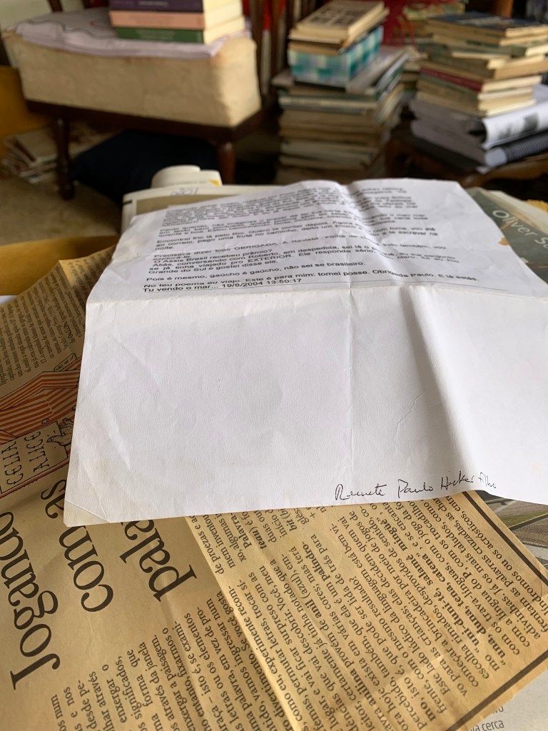 Paulo querido, não imaginas o prazer de ler tua carta transformando o meu mar em texto bem pontuado, quase poema sem eu saber. Depois, tua carta toda quente e boa. Estou caminhando, lenta, inclusive já usando a homeopatia.