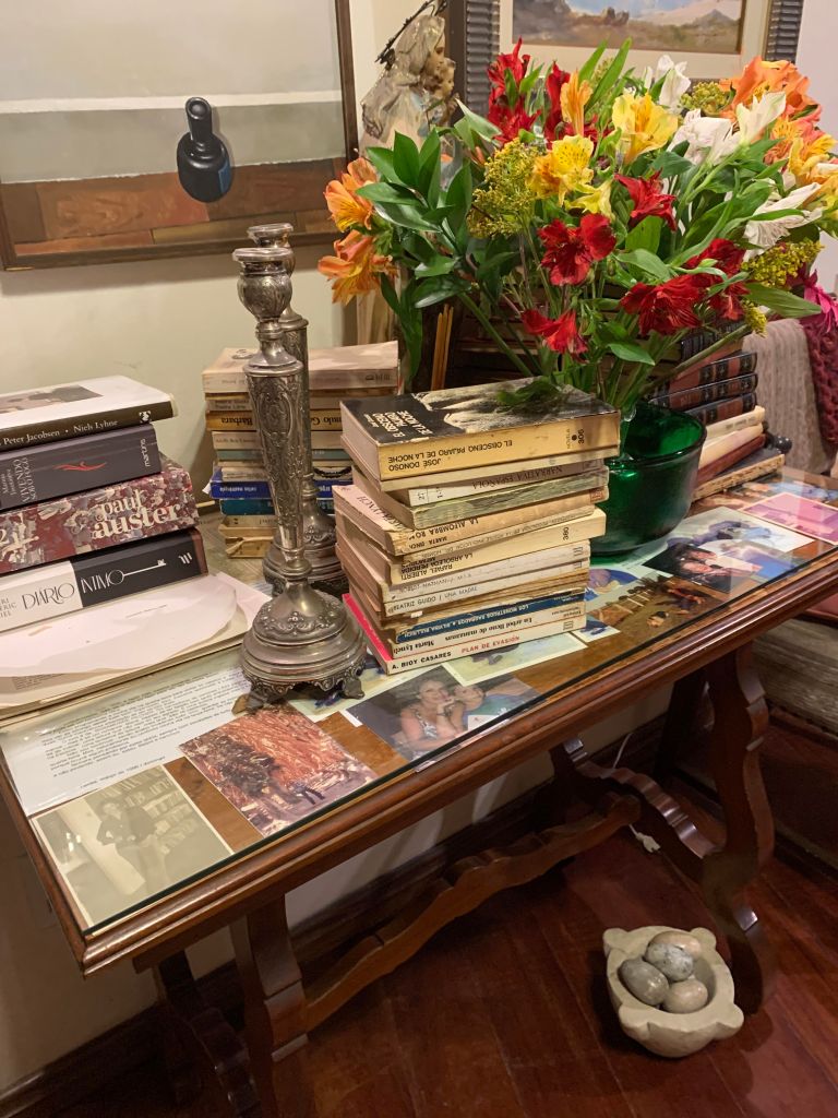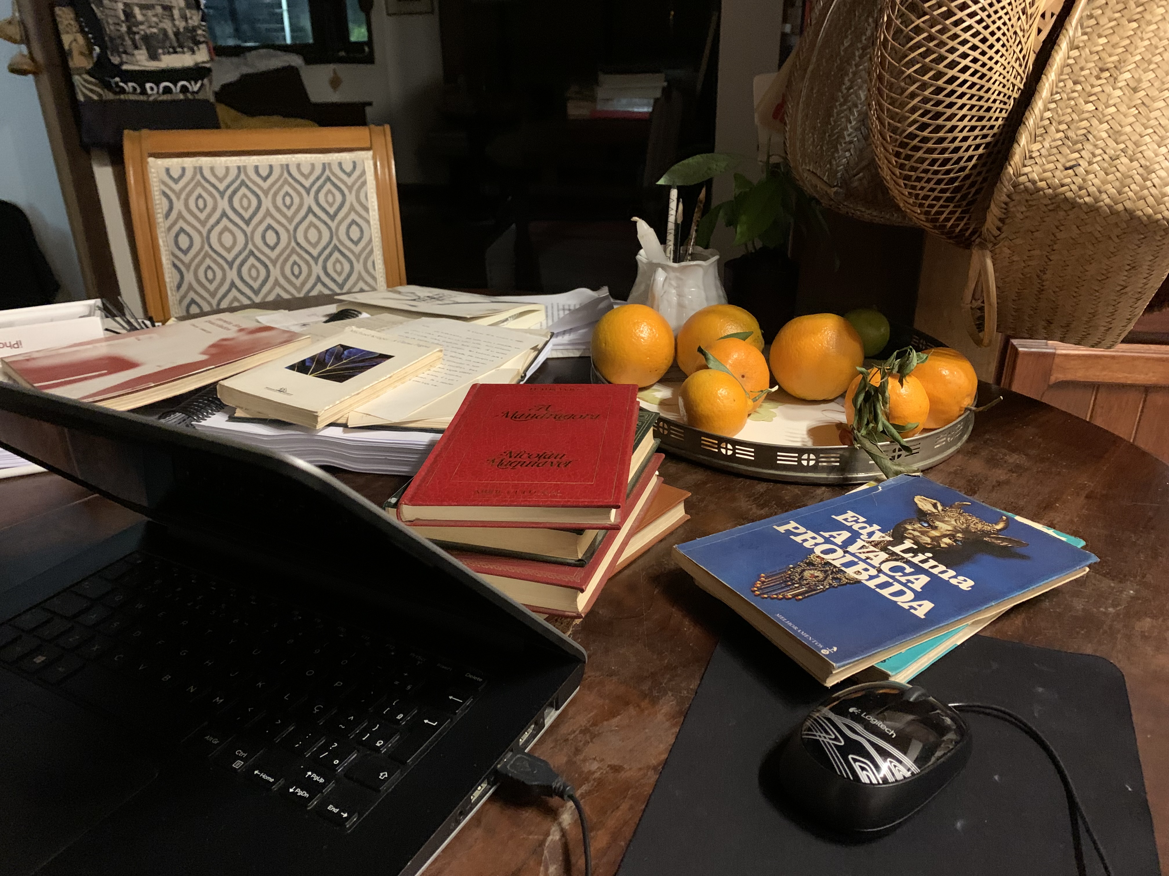 Saudade não existe. Não quero nada nem ninguém de volta. Minto sobre saudade. Nunca sinto saudade. Experiências são / se escondem vivas todas juntas, ao meu lado, hoje, agora. Posso escolher: este brinquedo, aquele outro. Corda? Elétrico, pilhas, energia, de tração! E quando eu te penso, penso os dois andares da casa, com buganvílias penduradas, ouras coladas ao muro, floridas, estupidamente floridas. Eu penso o pedaço da vida que estou vivendo: Eu te penso como se tu e eu fosse nós, e eles todos este pensar fosse o EU mesma, a minha imaginação feito gente, reflexo. Uma química. Um facetado eu divino, perfeito. Vasos da sala com rosas amarelas e brancas, outras galhadas de flores. Quadros assinam teu nome, os livros dizem tua voz, e vejo teus atrevidos desenhos geométricos. Cadeiras colocadas estrategicamente. E quando eu entro o fogo da lareira se apressa agarrado nos nós de vinho. Sinto cheiro de bolo e cheiro de café. Oscilo entre ficar na copa, e te seguir: tua organização. Ah! Teu mundo impecável e festivo! Nunca escuto o desagradável reclamar, nenhum excesso, toda a ternura se multiplica porque cuidas. Tu cuidas. Este verbo é danado de detalhes porque toda atenção / cuidado respondem aos prazeres internos. Sinto sono. Um sono livre de pílulas porque me entrego a doçura de ser cuidada. Os lençóis estalando com dobras, perfumados. A limpeza me sacode de prazer, sequer sinto o corpo. Livros escovados, dois cadernos novos, folhas ofício, uma régua, lápis apontados, grafites diferentes. Um copo português com lápis coloridos: borracha, um estilete, uma aquarela de criança com dois pincéis pequenos, dois copos vazios. Abro a primeira gaveta da cômoda. Limpa, olho os detalhes. Da madeira o cheiro bom de pinho… A mala pequena segue encostada segurando a porta. As venezianas estão abertas. Gosto do azul…, e velhas e corajosas presilhas seguram as vidraças. Abro a porta-janela para a sacada pequena dos gerânios. O céu colorido de entardecer estupendo, tem amarelo azul rosa e branco deitados no horizonte: entardecer. Um copo de whisky, com gelo. O que mais posso desejar? De nada sentir saudade…, não. Esta minha gula de viver se apressa e alerta/chama meu corpo. Nenhum amor desmaiado velho do passado, ou lembrança embolorada me enternece. Agarro o momento precioso de ser eu, e sublinho os detalhes. Do quarto tão ao meu gosto! Usufruo. Abro o primeiro caderno, e a caneta tinteiro que trouxe comigo e escrevo: Estou estupidamente feliz. Nada pode ser mais cuidado, mais perfeito do que respirar a vida e o tempo, ser eu agora/hoje: 11 de setembro de 2021 – aniversário da Luiza, São Paulo -Elizabeth M.B. Mattos