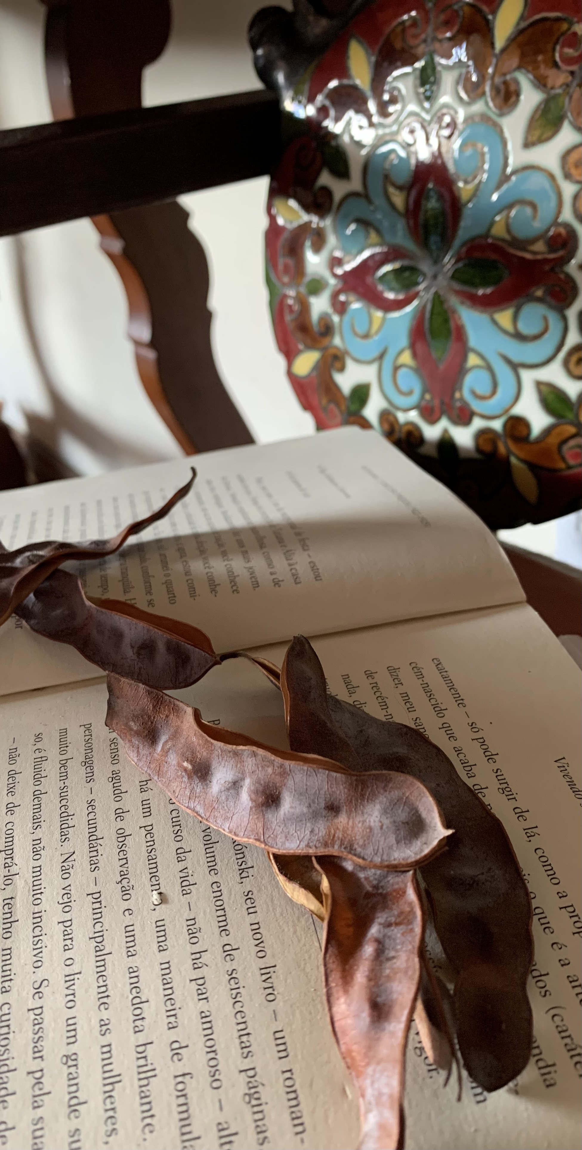 Atropelo informações. Desenho lembranças nas raízes necessárias do florescer. A quaresmeira se debruça na janela; o jasmim se esconde no verde, perfuma a sala. Passa o susto: suor seco. O improviso do esperado encontro: converso a conversa, mentalmente.