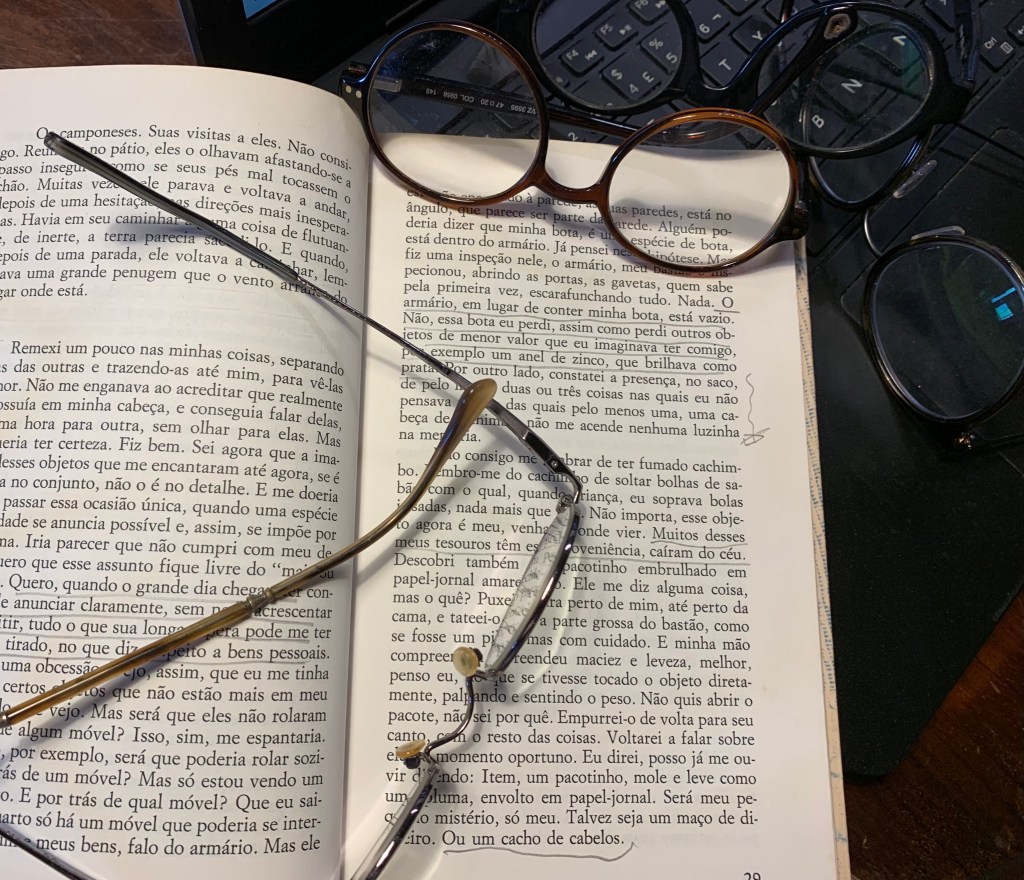 “Sinto estar, talvez, me atribuindo coisas que não possuo mais, e dizendo que estão me faltando coisas que não me faltam. Eu sinto que há outras, por fim, lá no canto, que pertencem a uma terceira categoria, a das coisas sobre as quais eu ignoro tudo e sobre as quais, portanto, há pouco perigo de eu estar certo ou errado. Eu me permito lembrar que, desde a última vez que conferi meus pertences, muita água correu debaixo da Ponte Butt, nas duas direções. Pois já morri o suficiente dentro deste quarto para saber que algumas coisas saem e outras entram, não sei graças a que poderes. E entre as coisas que saem, há algumas que voltam, depois de uma, mais ou menos, prolongada ausência, e outras que nunca voltam. Com o resultado que, entre as que entram, algumas me são familiares, outras não. Não entendo. E, mais estranho ainda, existe toda uma família de objetos, que parecem nada ter em comum, que nunca me deixaram desde que estou aqui, mas que ficam quietinhos no seu lugar, no canto, como em qualquer recinto desabitado”(p.99)