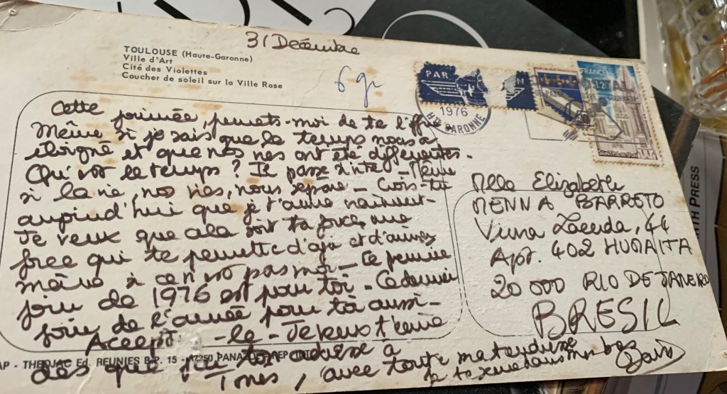 De dentro de um túnel que não termina…, não parei de caminhar, nem de pensar, estou mesmo a correr. Cansada, eu interrompo a pressa, não o passo. Devagar, eu sigo. Não imaginas a velocidade dos carros: o barulho, a poeira, e, às vezes, o silêncio. Quando voltar, eu vou te contar, em detalhes. Teremos horas horas e horas: um bule de chá, insisto. Eu gosto de café, tu sabes. Evito. Tenho comido menos, mas, ainda não emagreci. Apenas como mesmo. Durmo pouco. O desânimo grudou no meu corpo. Eu me deixo ficar na cama. Deveria voltar a trabalhar. Vou te contar com/em detalhes, não hoje. O ciclone não passou por aqui como deveria. Estamos na expectativa. Assim mesmo, ficamos quietos, parados. Esperar não é fácil. Tem qualquer coisa de florescer… Vou voltar a deitar, ficar quieta. Estou a reaprender sobre imobilidade / esvaziamento, paz e silêncio. Elizabeth M.B. Mattos – maio de 2022 – Torres