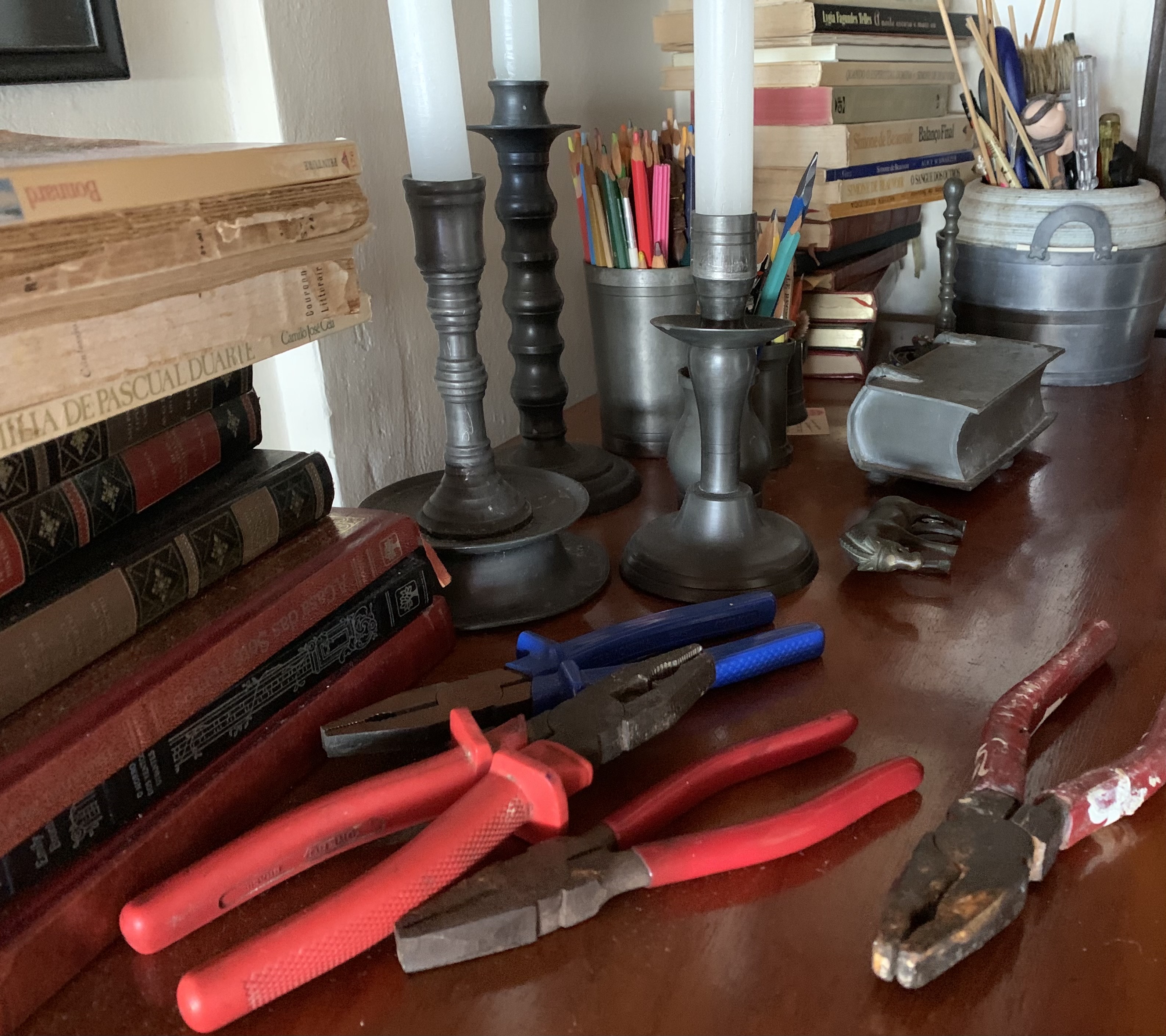 Entre tintas, odores, o movimento. Atordoada com a pressa… Nem pausa nem movimento, no imóvel ponto do mundo revoadas e pincéis. O mundo se refaz, eu olho, observo, vejo, mas não penso, acompanho. Deixo acontecer. Nem pausa nem movimento. Penduro o movimento, depois vou entender. Liberdade interior, desejo prático da mágica.