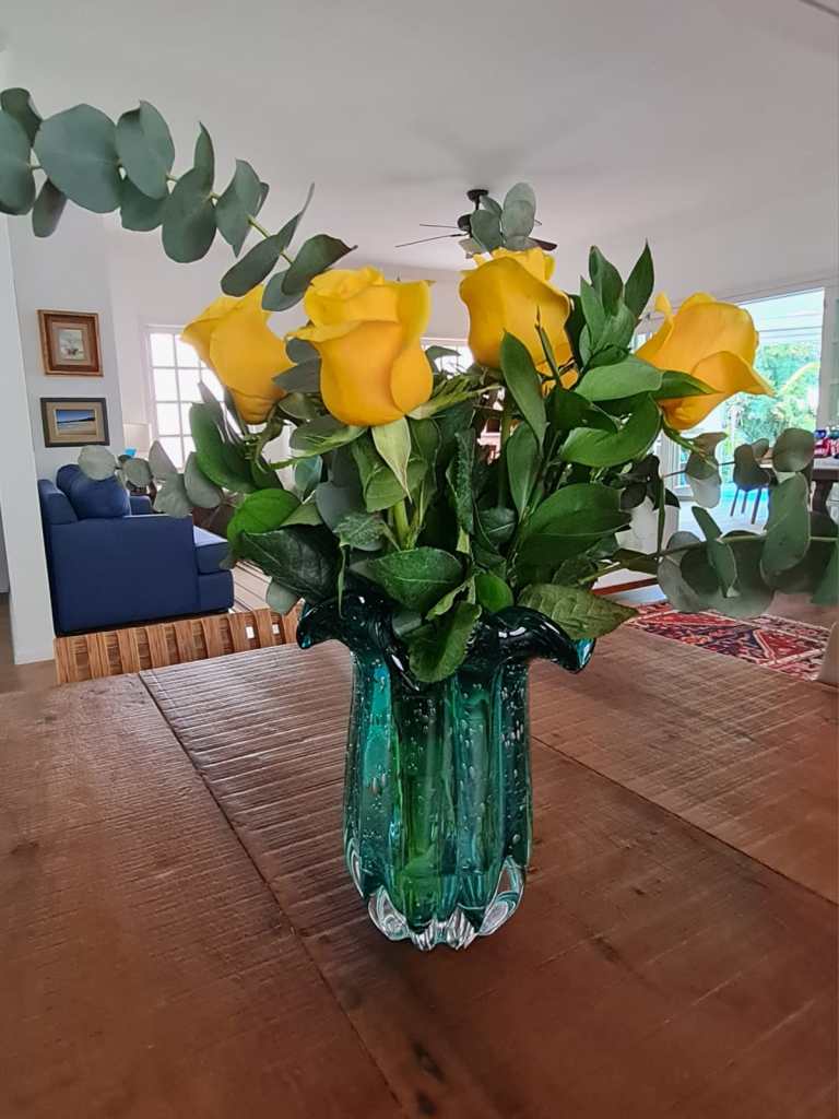 Domingo avança morno. Ruídos atravessam venezianas e vidraças fechadas e aborrecem…Ligo o rádio. Estranheza minha. De onde estou posso ver folhas verdes. O vidro da porta-janela está com respingos das novas folhagens, altas, esparramadas, volumosas, encondem as janelas do prédio ao lado. Ias gostar. Sexta-feira afundei-me na compra destes vasos: verdes e verdes para fazer o meu jardim no estreito corredor. Sábado fui ao cinema ver Dogville, excelente filme, talvez o melhor… Depois deitei e fiquei sonambulando no prazer de estar em casa. Nostálgica saudade que sabe ser diluída nas impossibilidades. O curto tempo dos nossos encontros. Diferentes. Não imaginei nenhuma relação homem versus mulher onde beijos e abraços importam. Aconteceu. Enamorados pela possibilidade, ela mesma, do enamoramento. Que vontade eu tive de me deixar acarinhar.