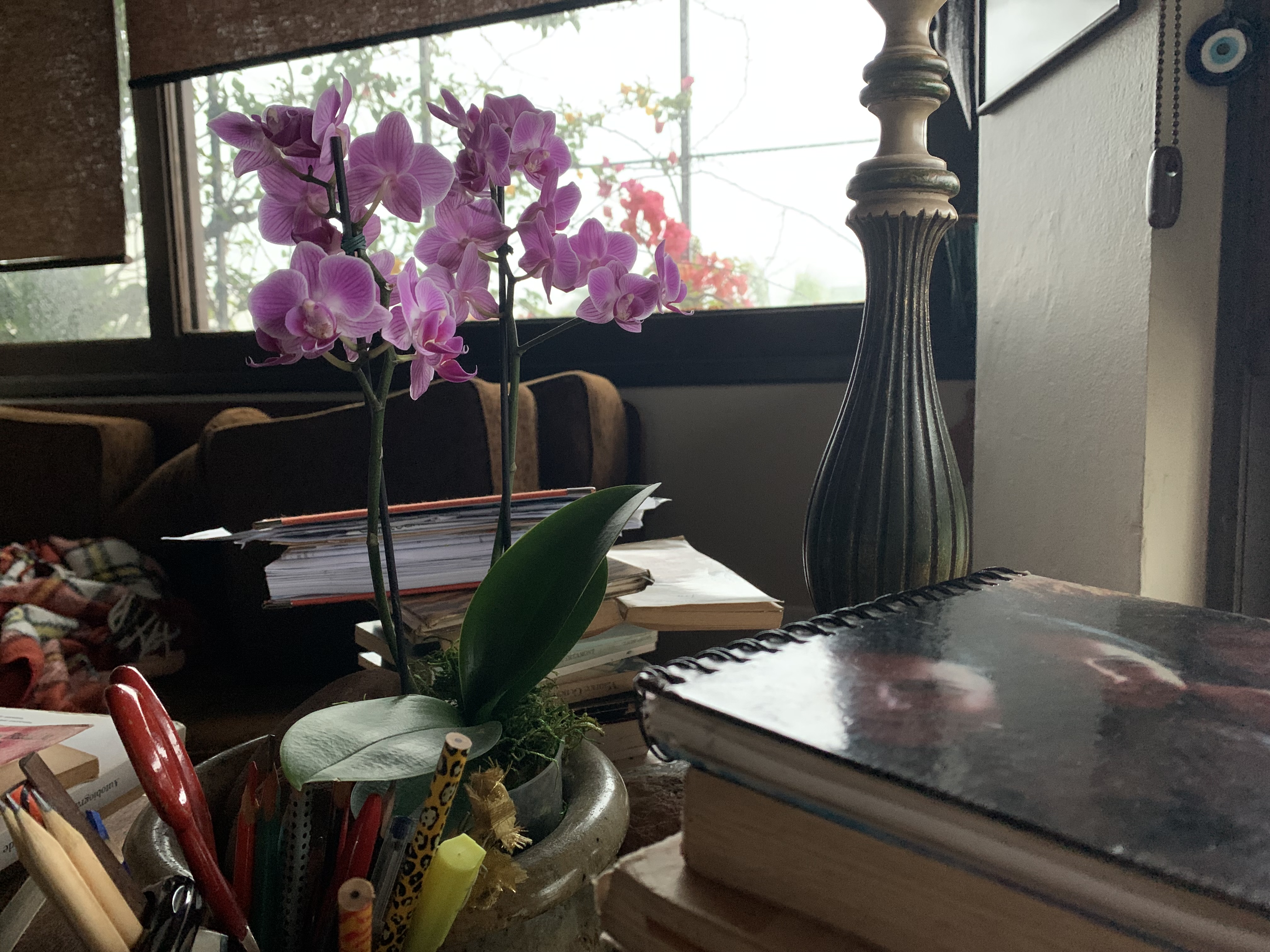 raios trovões e tanta água correndo. cascatas nas ruas. um lamento intenso de chover, chover. sem pausa, com a ventania estourando flores, sacudindo árvores: uma conversa cinzenta. busco o colorido das flores insistentes… Elizabeth M. B. Mattos – outubro de 2023 – Torres com chuva, muita chuva.