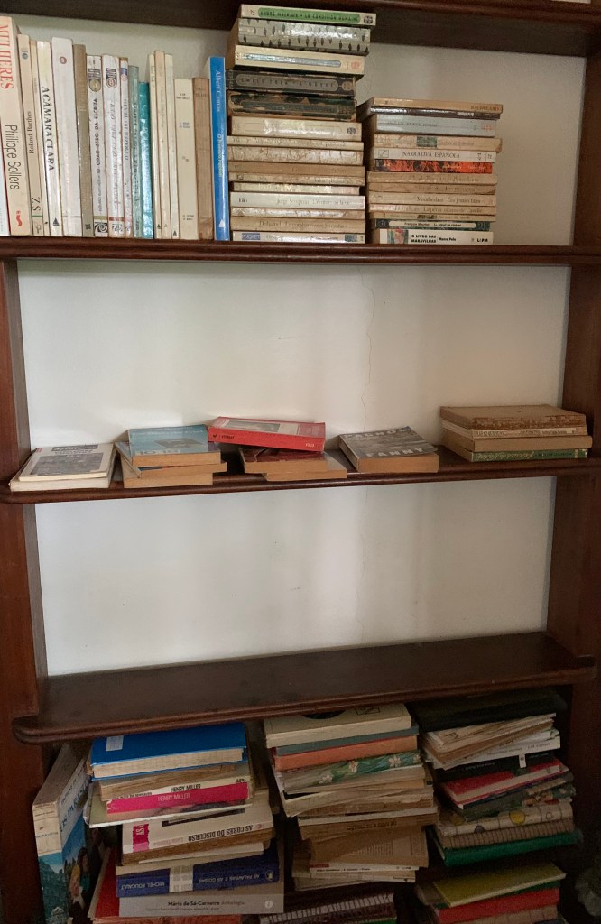 Compulsão / compulsiva pelos livros a serem limpos / guardados ou descartados, lidos, relidos… Usei errado o título?! Nada a ser resolvido, eu suponho, ou é preciso resolver? Ou estou / ando compulsiva, pensando em respostas? Estórias, parágrafos: voos e narrativas. Posse ou vida?