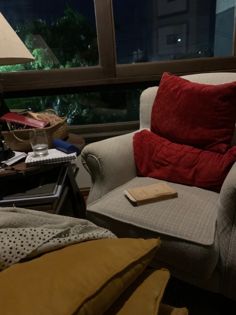 A chuva e as janelas escancaradas: cheiro do jasmim. Aquele prazer acorda faceiro: madrugada com violão e voz, bem baixinho, porque é cedo. Então, que bom!, súbito uma alegria fantasiada de frescor se derrama… Posso sentir o silêncio cheio. Vontade, súbita, de sacudir o corpo: eu danço. Leio sinais e vejo a lua… Não vai mais chover, não vai mais haver aquela conversa tamborilada da madrugada. Estou transbordando… transbordo curiosa alegria. Elizabeth M. B. Mattos – Torres