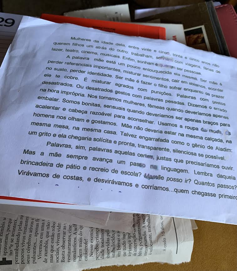 Deve ser um velho texto, de personagem desenhada… Reflexão de escrever / tentar. Eu escrevia escrevia com febre de escrever: o tempo todo, todo tempo… Releio o impresso… reescrevo / transcrevo, não resisto.