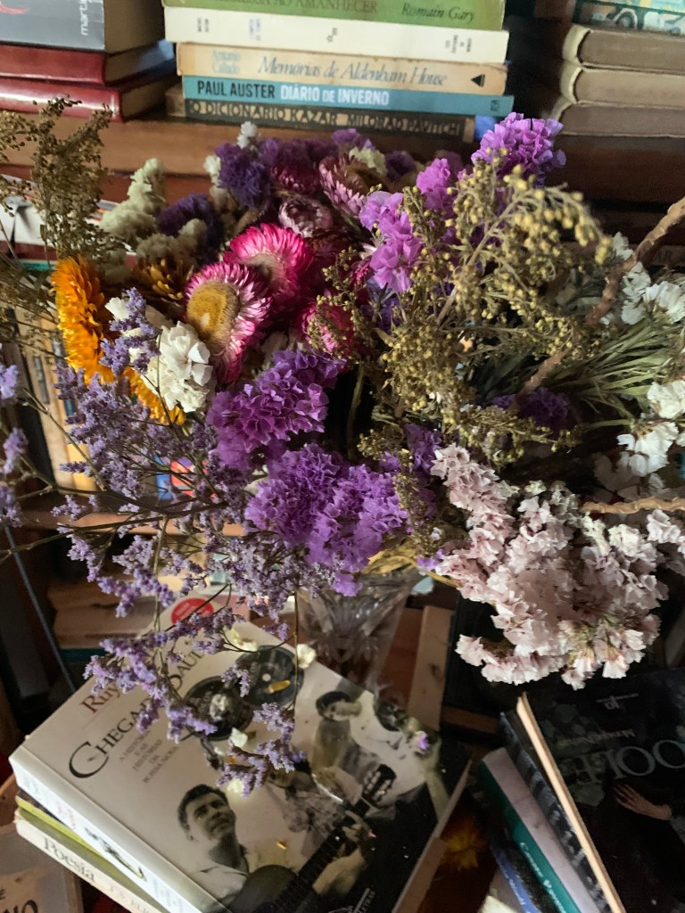 …pois é: os livros se atravessam… a música consome pensamento. leitura afunda os sentimentos, todos. um registro rápido, ler histórias envolve, transporta… contar histórias ou estórias é muito, muito difícil! escritores pintam almas: mas a tal alma tem cor / existe / posso descrever? estou confusa. oitenta anos explode / agita o tempo, ou serão os cinquenta? os aqueles misteriosos quarenta anos? todas as teclas se movimentam… vozes soam misteriosas. é preciso / il faut /aproveitar todos os detalhes. hoje comprei pão para muitos meses, sou exagerada. venta, venta, venta muito por aqui. a primavera colorida… ando preguiçosa e sonolenta. Elizabeth M. B. Mattos – outubro de 2025 – Torres
