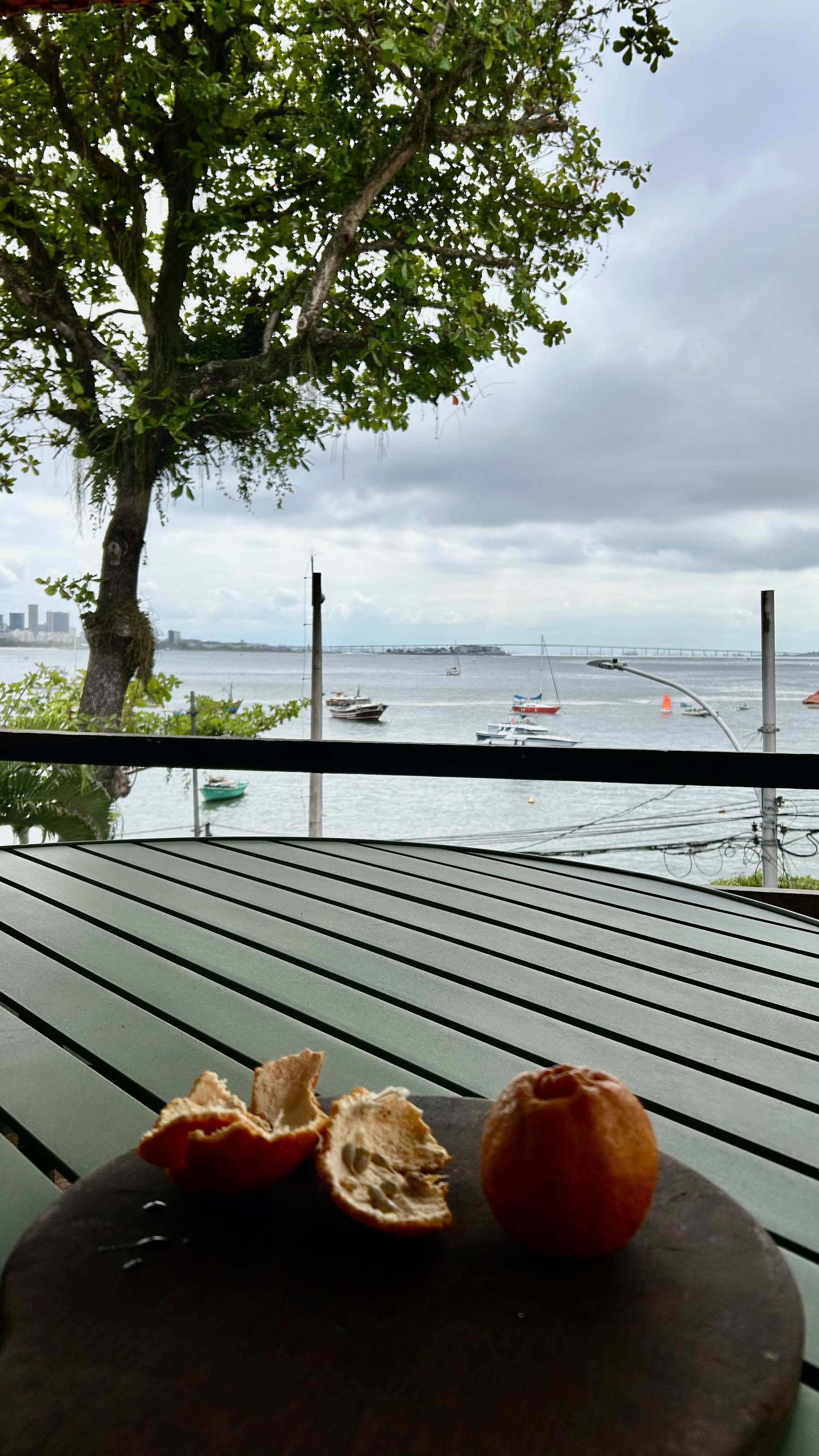 um beijo leve, clandestino. as mãos se juntam, não apertadas, tocadas. todo e qualquer gesto emoldura felicidade. eu te amo. e foi para sempre, tua primeira viagem, teu primeiro Rio de Janeiro, tuas pequenas férias e nossa liberdade. não importa a história toda, volta o ingênuo e bom encontro: o amor. Elizabeth M. B. Mattos – outubro de 2025 – Torres