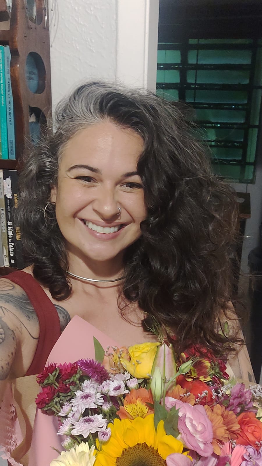 escrever / sem voltar / sem contar: como tu sugeriste, exatamente, tua voz / não te interrompes / dizes / sentes / assim é o tempo inteiro: máquina de poetar, argumentar, exigir. sei lá como escrever, eu apreendo, mas não completo, pois é… esqueço. não consigo anotar tudo: vassoura, puxão – sim agarrar e puxar, varrer. ou decidir, sem limpar (deixar fluir). amarrar, empurrar. eu nem aguento porque é muito mundo / muito sentir / muito aquietar e sussurrar. altas vozes, aos gritos… não, são sussurros, sussurros incertos e eles cantam todos os ritmos todos as músicas. difícil escrever no meio do sono, os sonhos…impacto. então eu aguento. amanhã eu escrevo. Elizabeth M. B. Mattos – outubro de 2025 – Torres