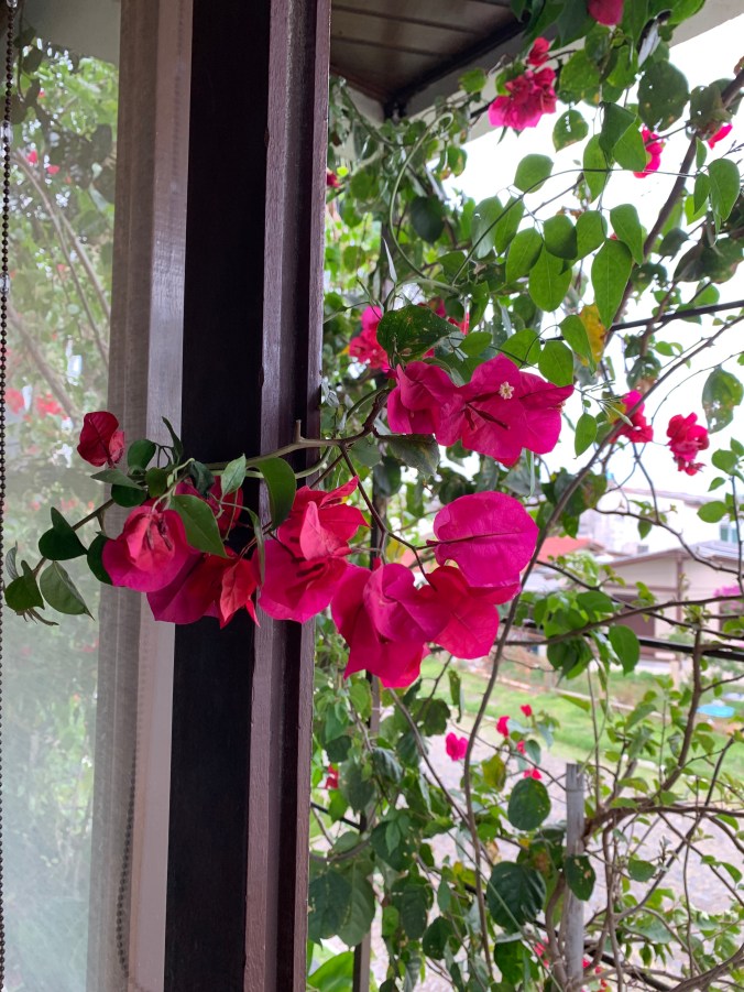 eu acho que escrever é costurar pequenas memórias, esticar e fazer o tal enredo, cheio de bilhetes, cartas, áudios, fotos com cheiro de passado ou enfeitando, como árvore de Natal planejada, o futuro. Natal! pois é… logo é dezembro, logo o calendário se mexe, mas eu? eu fico enraizada aqui. Gosto da minha casa, meu canta e das buganvílias… estão a enfeitar o terceiro andar cheia de cachos floridos, não podei aquele lado… / mas elas responderam florindo… ah! a jardinagem! Elizabeth M. B. Mattos – novembro de 2025 – Torres