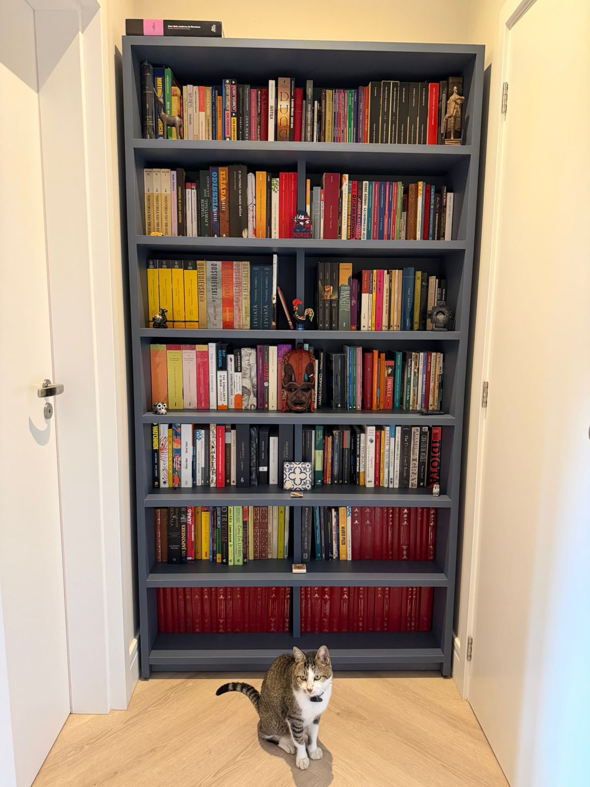 que foto! amorar não é fácil, ler também exige / até organizar, limpar os livros… afinal, viver é difícil! Tigrinho, Mimoso… viva aos gatos! levam / trazem bons fluídos. independentes e leitores! gatos leem / cartas explicam. divago… preciso escrever pro Ricardo, preciso voltar a tecer / ser… preciso dar respostas, pensar, ser eu, ser tu. ser, de repente nós. Elizabeth M. B. Mattos / 20 de abril de 2023 / Torres (niver do Lucas)