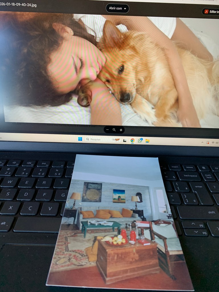 animada, animadíssima, vou ordenar, limpar e embelezar, mas logo, tão imediatamente, sinto vontade de comer abacaxi, folhear outra vez o livro, beber o suco e despejar a preguiça inteira entre travesseiros e sono. Elizabeth M. B. Mattos – fevereiro de 2026 – Torres
