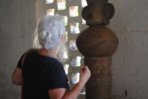 ESTOU DE COSTAS OLHANDO UMA ESCULTURA LINDA foto